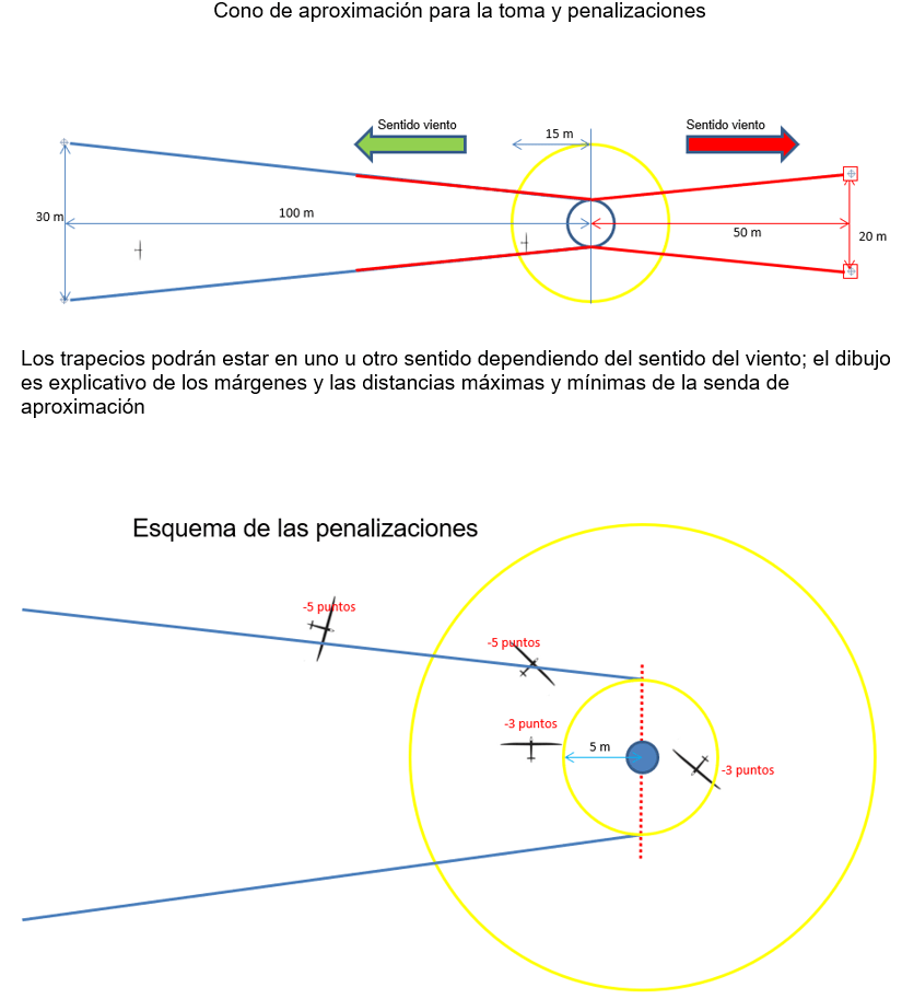 el objetivo es volar 10 minutos exactos y aterrizar lo más cerca posible del punto marcado.
