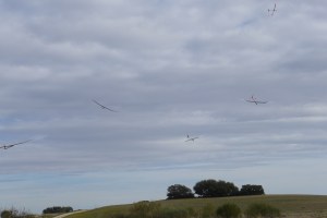 A pesar del buen tiempo, durante la primera parte del mismo pudimos comprobar que las térmicas eran escasas y esquivas de modo que hasta el más pintado podía hacer mangas de tres minutos y pico, sabiendo que aquí no hay manga de descarte. Cuando el sol ya había calentado el terreno la actividad aumentó y en las dos últimas mangas se prolongaron más los vuelos.