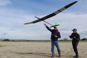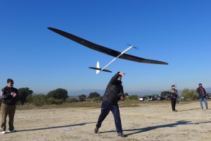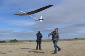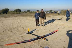 El cuarto clasificado del día fue el maestro Juan Ramos, que se hizo con tres de los cinco miles posibles pero que un severo pinchazo en la tercera manga le sacó del cajón del podio, ya que en esta modalidad no hay descarte del peor vuelo y si la cagas en alguna pues te la llevas puesta en la clasificación. Lo de maestro es que además de las sesudas sesiones sobre uso y manejo de los composites a las que hemos tenido ocasión de acudir que luego sabe aplicar a la fabricación de sus propios modelos, que siempre son competitivos, y que a medida que va renovando la flota y actualizando los perfiles de sus diseños son otros veleristas los que se benefician de su magisterio a través de esos aviones que han seguido compitiendo en otras manos.