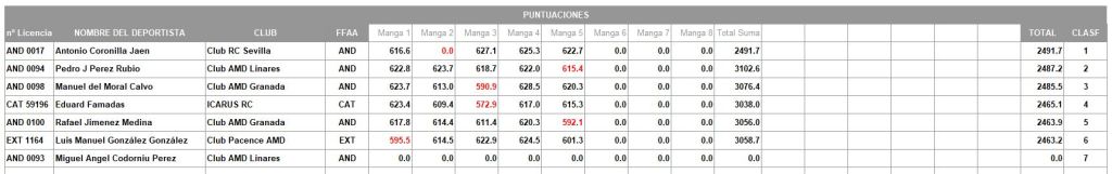 Para la clasificación final se suman los puntos obtenidos en todos los vuelos eliminando los obtenidos en el peor de cada concursante. El Campeón sería Antonio Coronilla, subcampeón Juan Rueda y tercer clasificado, Juan Sixte.