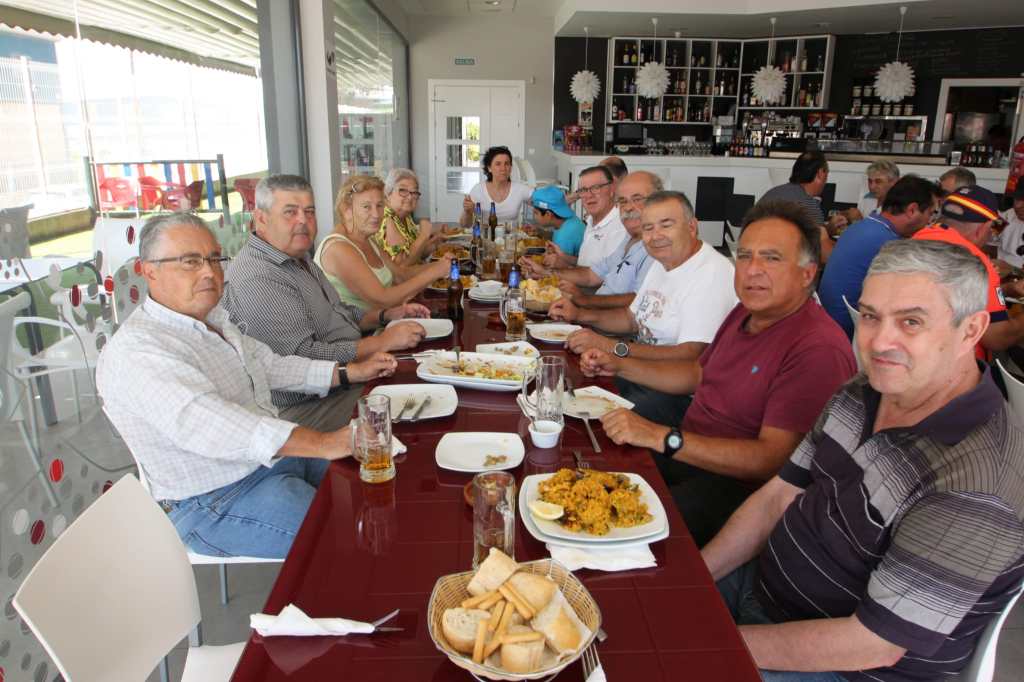 Como no todo es competir, también se disfrutaría despues de una agradable charla teniendo delante unos exquisitos manjares, esta vez servidos y muy acertadamente, en el campo no hubieramos disfrutado como en otras ocasiones por causa de las inclemencias del tiempo. No hay mas que ver la cara de felicidad de los presentes.