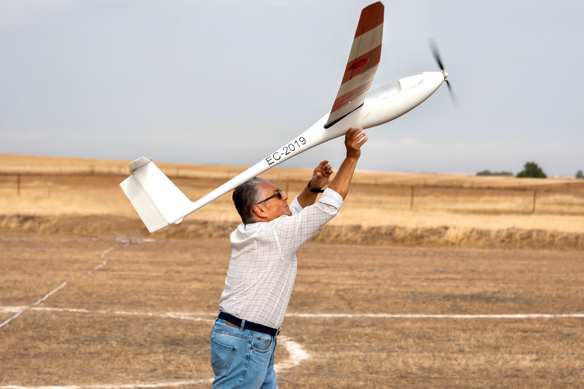 Una foto de cada piloto con su modelo, Javier Lara era el único participante que despegaba con ‘carrito’