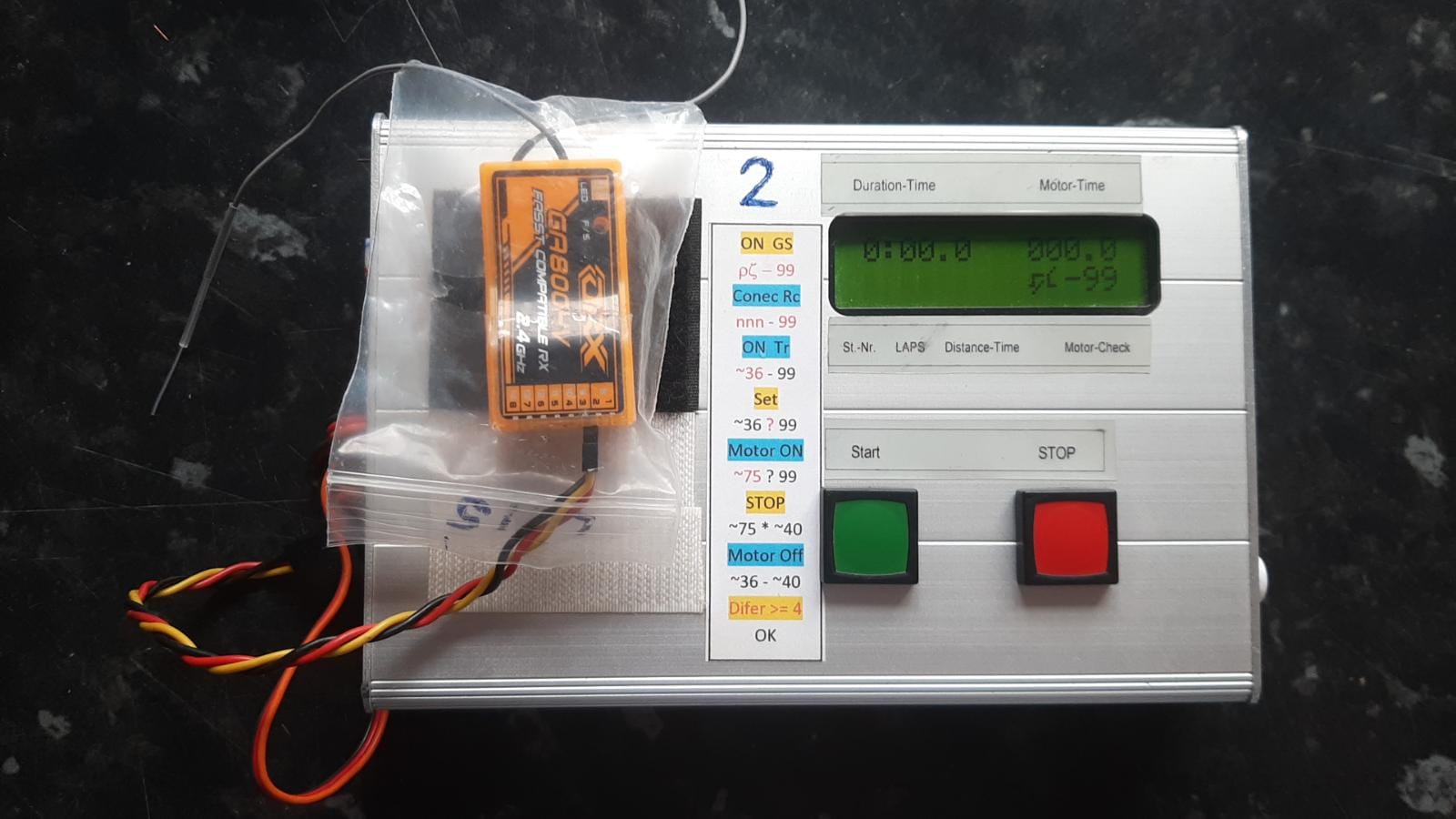 El ‘chisme’ se prepara para que con el receptor emparejado con el colocado en el avión reciba la misma señal que aquel en el canal de motor, de forma y manera que el cronometrador pueda visualizar, desde el momento del lanzamiento (pulsará ‘Start’) hasta el momento de tocar el suelo (pulsará STOP), el tiempo de vuelo total y el realizado con el motor en marcha; la diferencia entre ambas medidas será el tiempo de vuelo a vela.