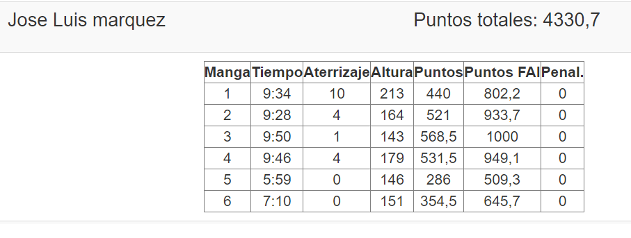 Como en ocasiones anteriores, la fineza del vuelo (segundos vuelo/penalizacion altura) no coincide con la clasificación del campeonato, ¿que mas ‘parámetros’ intervienen 🤷♂️