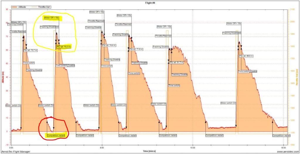 También hubo sus despistes, las cosas de los nervios y la falta de práctica; como salir cuatro veces en una tarea de tres, o despegar dos veces en el mismo vuelo de la Tarea C (All up, 3 * 4′). Como se suele decir «las cosas del directo»…