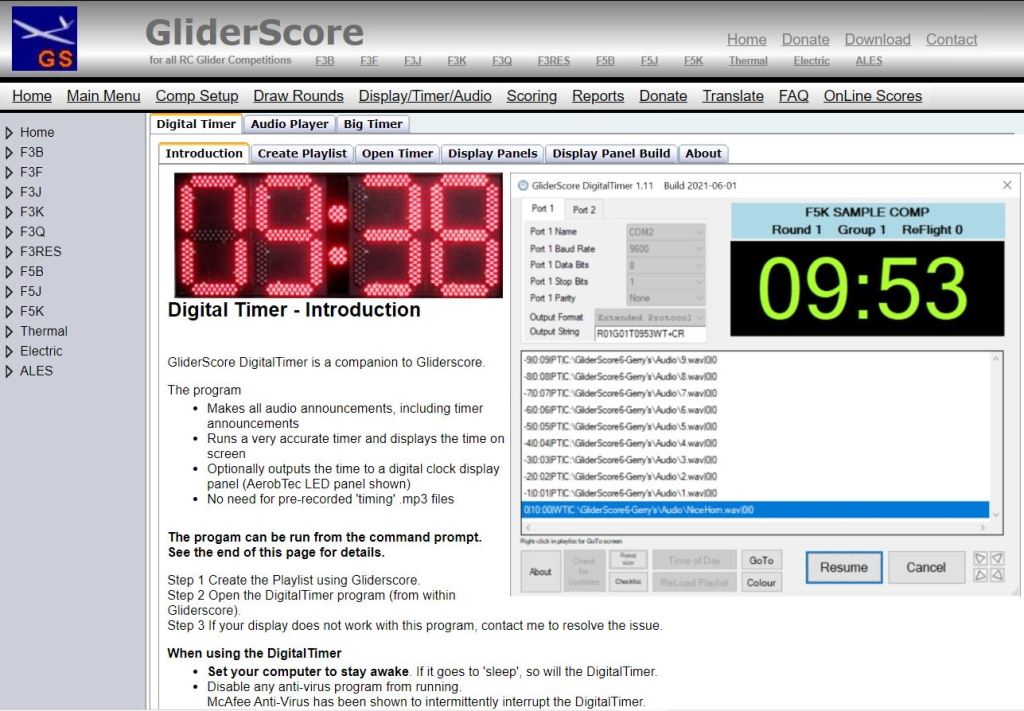 En esta ocasión ‘la Secretaria’ no sería autónoma como en las pruebas de F5J ó 50g. Además de usar GliderScore para las puntuaciones lo usaríamos para controlar los tiempos en las tareas a realizar por lo pilotos (denominamos ‘Secretaria’ al sistema de sonido/cronometro)