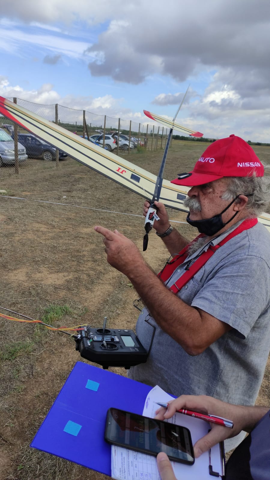 Para cronometrar, habida cuenta que en algunas de las tareas se realizaban múltiples vuelos y el piloto intenta perder el mínimo tiempo posible entre una toma y el siguiente despegue, la organización buscaría una app ‘multicrono’ (Multi Cronómetro y Temporizador) que pese a sus posibles inconvenientes resolvió el problema. La mejor forma es con un par de cronos, como mínimo, de los de siempre, pero requeriría una cierta experiencia o hábito en cronometrar y, sobre todo un conocimiento mucho más profundo del reglamento de F5K y de las diferentes tareas. Los inconvenientes que planteaba el uso del móvil son por todos conocidos, el oscurecimiento de la pantalla, la entrada de una llamada, mensaje, aviso, etc. posible en el momento más inoportuno (Ley de Murphy) y como podía pasar los cronometradores se sacrificaron un poco mas y pusieron los aparatos en modo avión, no agradeceré suficientemente el que se prestaran a esa labor … , iba a poner ‘ingrata’ pero lo dejaremos en ‘pesada’ 😉 .