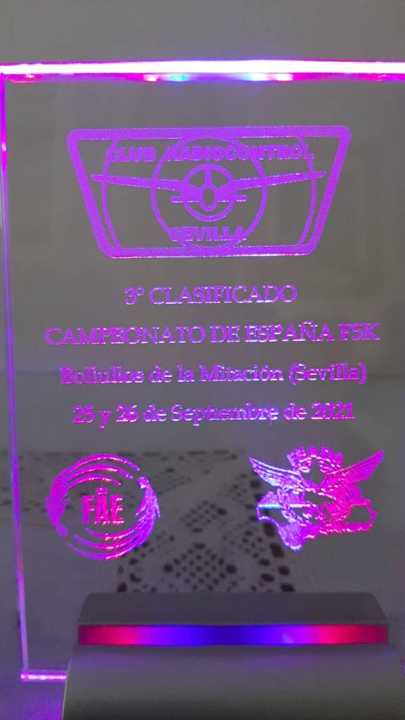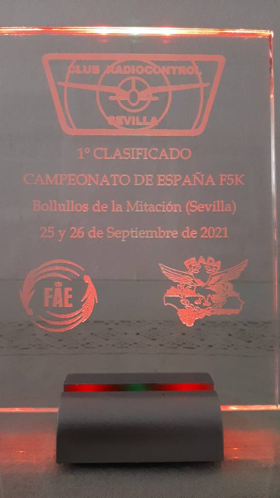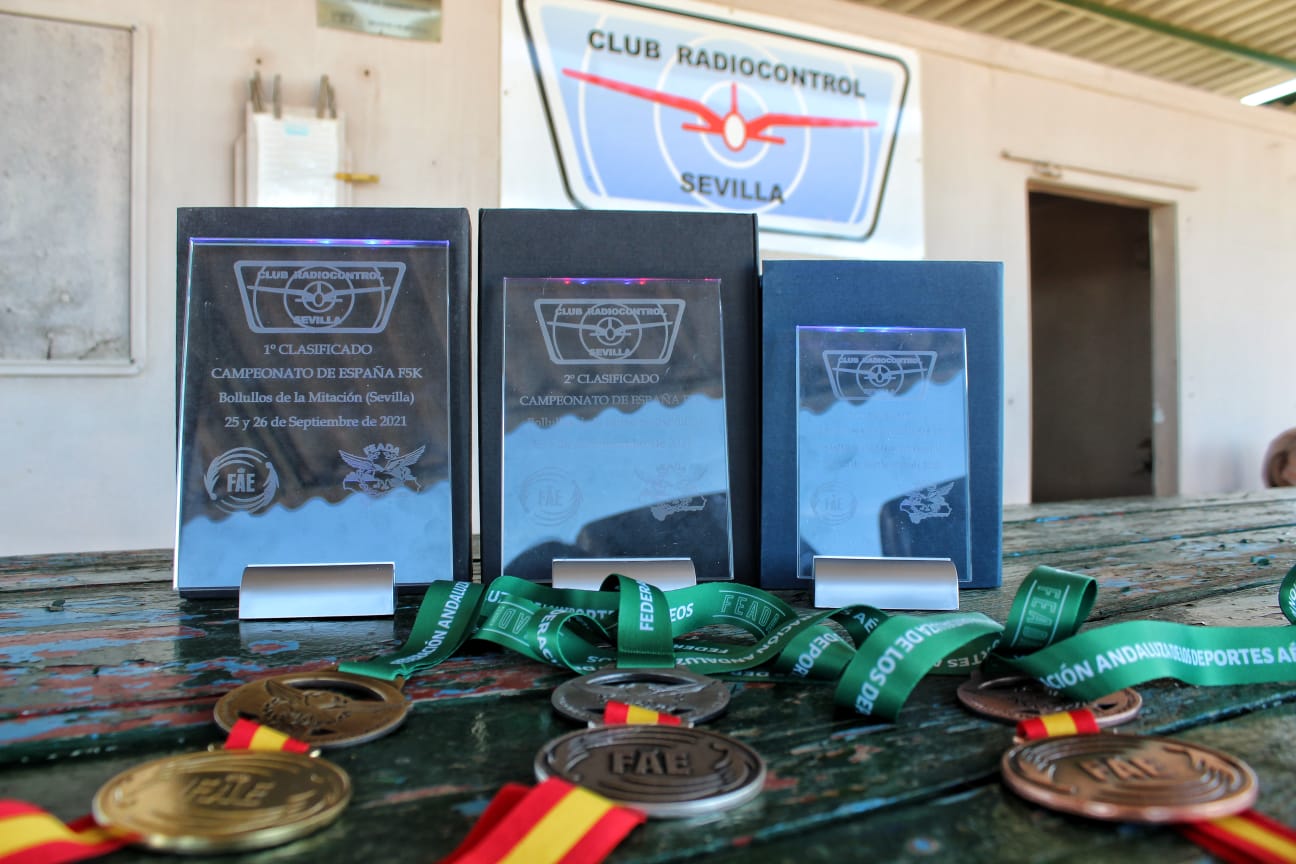 Por parte de FEADA, para el Campeonato de Andalucía, se daría una gorra para el hijo o nieto (haciendo afición) de cada piloto además de las correspondientes medallas al podio; para el Campeonato de España se le daría un recuerdo del Club Radiocontrol Sevilla a todos los participantes (pilotos, organización y espectadores) y se encargaron unos trofeos, cuando menos ‘curiosos’… retroiluminados y con cambio de colores, además de las medallas compradas a la RFAE para los ganadores.