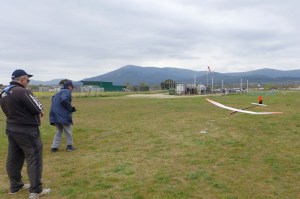En cuanto al devenir de la competición cabe reseñar la paliza que nos dispensó Julio Contreras que hizo 5 de los 6 posibles miles. Con térmicas o sin ellas, volando 9:59 o 6:19, pero siempre por delante, o más bien por arriba del más osado. Porque con las condiciones atmosféricas reinantes las térmicas no aparecieron hasta las dos últimas mangas. Bueno, lo que el común de los mortales entendemos por “térmica”. Pero Julio Contreras, según explicaba Javier Hernández Rodero, es un maestro en las “térmicas de baldosín” (sic.), es decir, que fue capaz de sostenerse a baja altura con tal de encontrar una zona sin descendencias mientras que el común de los mortales descendíamos sin freno de la manera más elegante posible, porque eso sí las descendencias las hubo del tamaño de las montañas que teníamos enfrente. O también era Julio capaz de regatear las ráfagas de viento frío en las que (nos) veías al incauto(s) que se sentía cómodo a la altura a la que había cortado motor que a los 2:03 (Rafa I.) o a los 2:26 (Jesús D.) o a los 2:31 (Antonio T.) tenía que aterrizar porque le habían segado el aire debajo del ala.