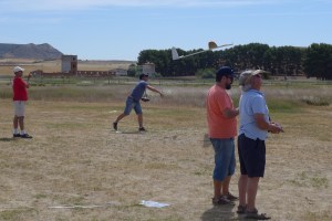 A reseñar también el único incidente, choque en el aire entre los modelos de Jorge Camacho y José María Sancho, como resultado el modelo de José María Sancho (Supra HM) perdió una orejuela y bajó, hábilmente pilotado hasta la pista aterrizando con suavidad. Como daño colateral, la orejuela, que cayó colina abajo, la recogió Javier Hernández Rodero sufriendo en el camino un costalazo, inicialmente sin importancia, pero a la postre (es decir, al postre, después de comer) le obligó a ir a urgencias donde le diagnosticaron fisura de una costilla y esguince (esta juventud…….). Que te mejores pronto y completamente.