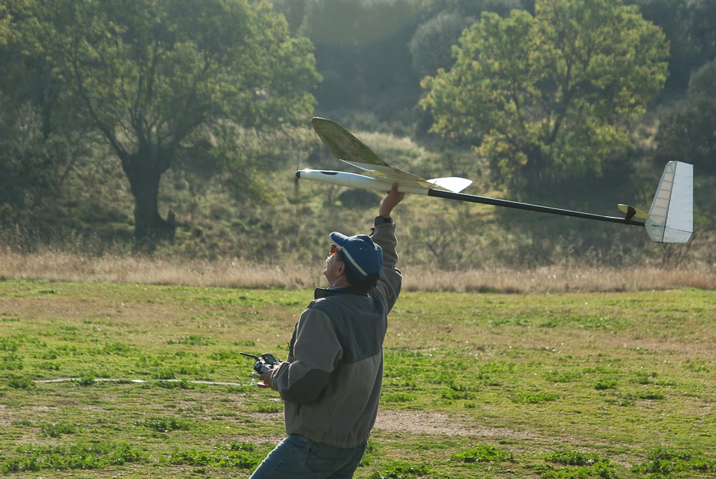 Con tanto figura desatado la única manera de dar guerra era arriesgando más, como consecuencia de ello, hubo dos concursantes que dimos motor con el consecuente “0” patatero en la manga e irremisible hundimiento en la clasificación de la prueba, en mi caso puedo confesar que fue por intentar llegar donde había unos pájaros enganchados a una térmica pero me hundí antes de llegar y como sabéis los que habéis volado en el Petirrojo, el campo está rodeado por una ecológica barrera de encinas cuyas copas comenzaron a impedirme ver el velero, así que no me quedó más remedio que usar el motor para no quedarme sin él, que ya son muchos los concursos que llevamos volviendo a casa juntos y sin roturas y no era cuestión de terminar con una relación tan duradera.
