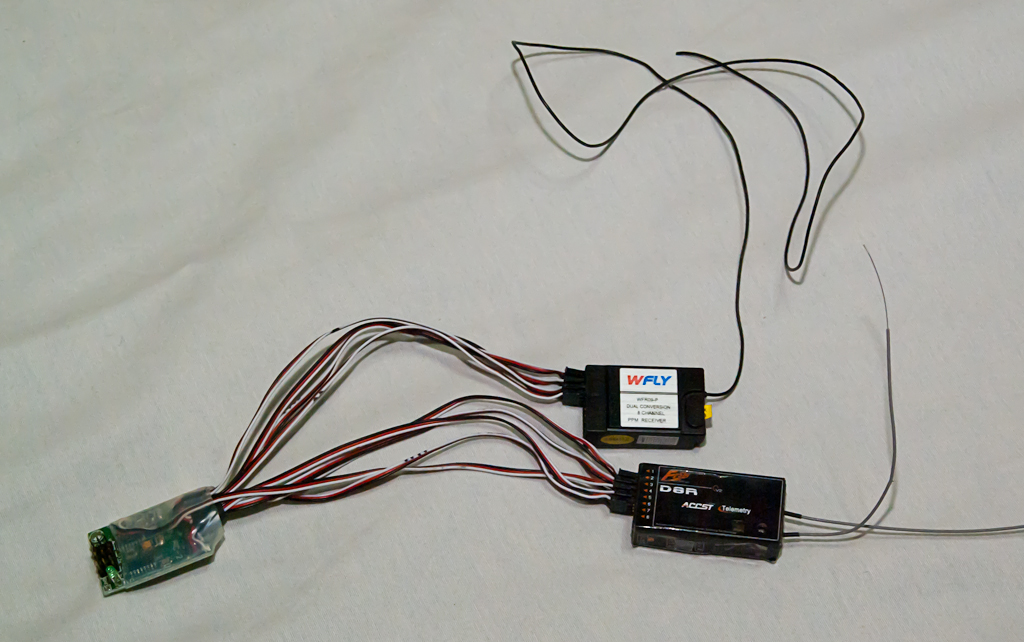 Con el dispositivo “Wireless Trainer” de Petirrojo no es necesario de disponer del mismo tipo de emisora. El sistema es conceptualmente sencillo: se utilizarán dos receptores embarcados en el modelo. Cada uno está enlazado a su emisora. Un canal de la emisora del Profesor obliga a conmutar entre las dos emisoras, de modo que a través de ese canal se decide qué emisora está controlando el modelo.
